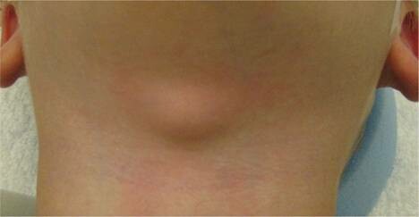 Ukuran benjolan sangat bervariasi, dan dapat disertai sejumlah gejala berikut: